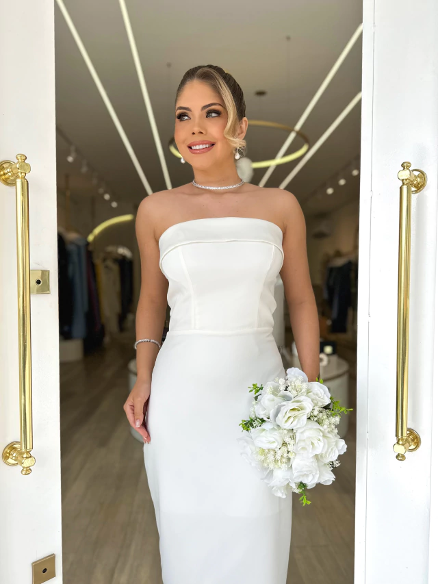 O vestido midi tomara que caia justo, é uma peça encantadora que combina romance e elegância de uma maneira deslumbrante. O comprimento midi confere ao vestido uma sensação de sofisticação e estilo clássico. Ele alcança a altura perfeita, proporcionando um visual elegante e moderno. Além disso, o comprimento midi é extremamente versátil e adequado para diferentes tipos de corpo. O design tomara que caia adiciona um toque de glamour e ousadia ao visual. Ele revela delicadamente a pele enquanto mantém a sofisticação e a elegância. Uma coleção aberta para as noivinhas românticas e delicadas, que pressagiam a experiência completa da escolha do vestido dos sonhos! Ideal para pré-wedding e casamentos intimistas, podendo ser usado em casamentos ao ar livre, praia, religioso, mini wedding, casamento à dois são magníficos para o uso deste modelo. O modelo ideal para você que busca sofisticação e romantismo.
